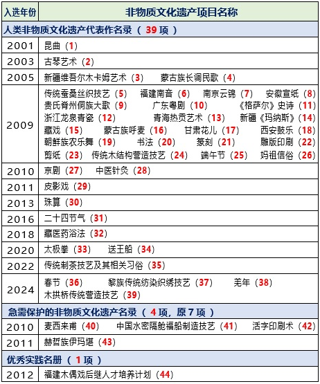一、我國共有44個(gè)入選世界級的非遺項(xiàng)目,總數(shù)居世界第一