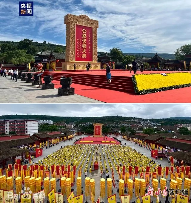 甘肅天水是伏羲的誕生地,自古以來就有祭祀伏羲的傳統(tǒng)。自1988年以來,每年6月夏至日舉辦的天水公祭伏羲大典,已成為海內(nèi)外同胞尋根祭祖的重要平臺。2006年,“太昊伏羲祭典”被列入首批國家級非物質(zhì)文化遺產(chǎn)名錄。2014年起,天水每年與臺灣地區(qū)同日同時(shí)舉行海峽兩岸共祭伏羲典禮。