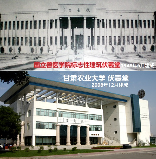 1946年10月國立獸醫(yī)學(xué)院成立后,于1948年6月建成了當(dāng)年蘭州最雄偉壯觀的建筑——伏羲堂。有深厚國學(xué)功底的校長盛彤笙,為紀(jì)念人文始祖伏羲氏在認(rèn)識自然、適應(yīng)自然、改造自然和發(fā)展生產(chǎn)生活的過程中,所進(jìn)行的一系列造福人類的發(fā)明創(chuàng)造,將這幢教學(xué)大樓命名為“伏羲堂”,并親自撰寫了一篇銘文《伏羲堂記》,“用追前烈,以志建堂之艱難”。