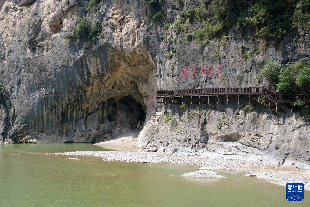 7月14日在青泥嶺拍攝的碥道遺存。新華社記者 陳斌 攝