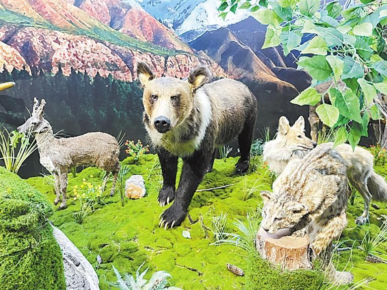 祁連山國(guó)家公園自然博物館動(dòng)物標(biāo)本。新甘肅·甘肅日?qǐng)?bào)通訊員 李夢(mèng)皎