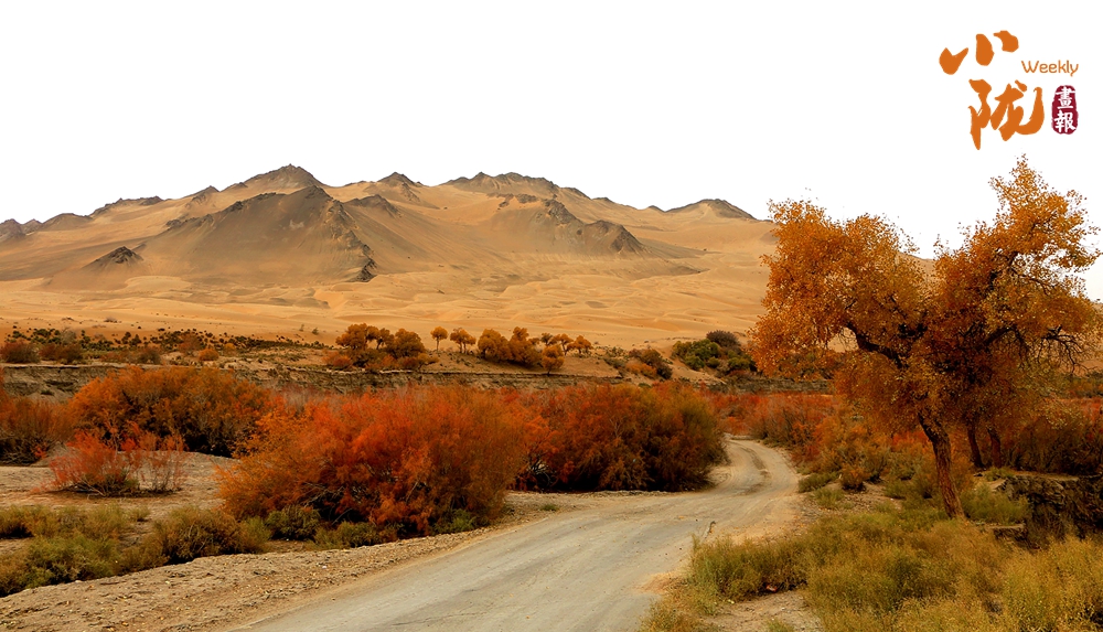 登高望遠,悠長的峽谷蜿蜒曲折、千年胡楊郁郁蔥蔥,它們有的生長在谷底、有的生長在沙崖上、有的生長在沙山間,這些野生胡楊黃綠相間、耀眼斑斕,為秋日的胡楊峽谷增添了生機與活力。