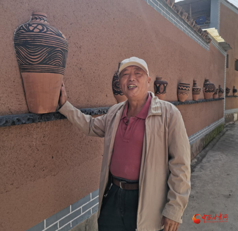探訪完寺洼遺址后,記者一行又來到馬家窯村實(shí)地采訪。走進(jìn)馬家窯村,街道干凈整潔,花壇綠蔭中紅花奪目。尤其花壇內(nèi)間隔樹立的馬家窯陶器,和村內(nèi)道路兩旁墻上鑲嵌的造型各異的陶器,更讓整個(gè)村子彌漫出濃厚的歷史氛圍。