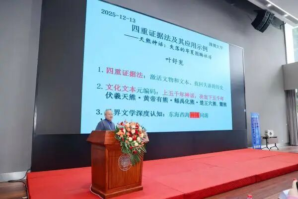 2025年12月13日,在深圳大學召開的第九屆中國學術評價論壇上,上海交通大學文科資深教授葉舒憲提出的“四重證據(jù)法”入選中國哲學社會科學10個原創(chuàng)研究方法(征求意見中)。“四重證據(jù)法”主要涉及歷史學、語言文學、社會學等學科,為人文學科提供了一套突破性的方法論體系,成功推動了跨學科融合,為構建中國自主知識體系提供了重要研究方法,充分體現(xiàn)了上海交通大學人文社科“立足傳統(tǒng)、面向未來”的學術追求,彰顯了上海交通大學新文科建設持續(xù)發(fā)力、人文學院文脈傳承和繁榮發(fā)展的卓越成效。