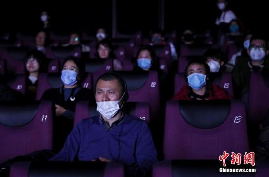 資料圖:1月23日,影迷在電影院內戴口罩觀影。