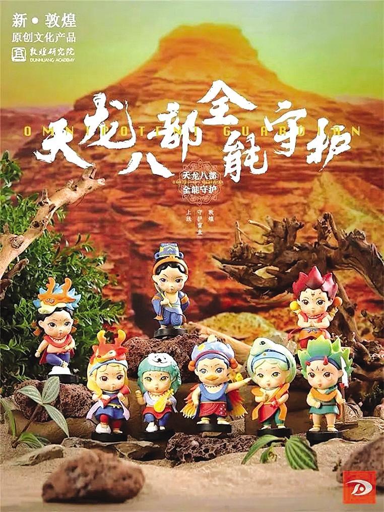 盲盒的設(shè)計(jì)取自敦煌莫高窟壁畫,特指佛經(jīng)中的八種神道怪物,和金庸的小說(shuō)《天龍八部》也有人物對(duì)照。盲盒包括迦樓羅、乾闥婆、夜叉、摩睺羅伽、帝釋天、緊那羅、阿修羅、那伽八大護(hù)法神形象。這也是繼故宮、河南博物院、三星堆博物館之后,敦煌研究院又推出盲盒。
