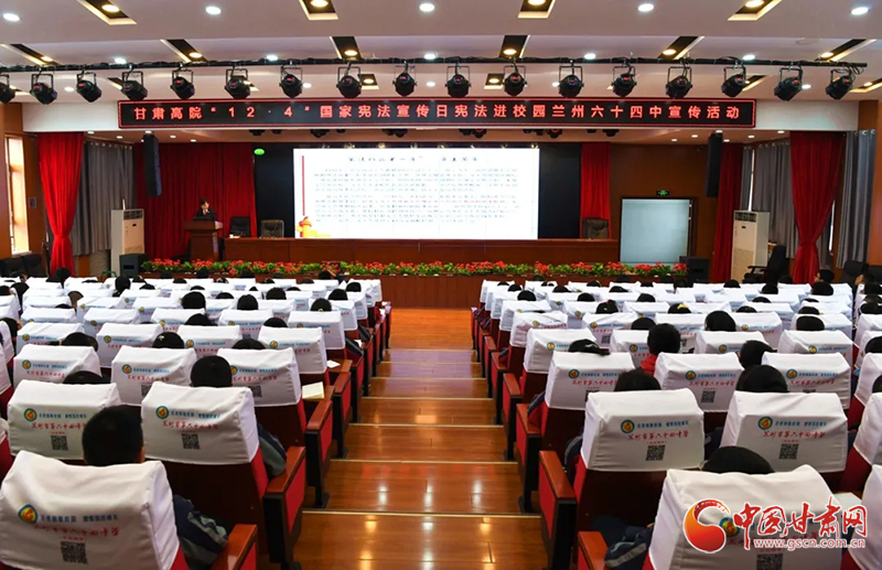 中國甘肅網(wǎng)12月4日訊(本網(wǎng)記者 李紅軍)12月4日是第七個(gè)“國家憲法日”。今天下午,甘肅省法院少年法庭的法官走進(jìn)蘭州市第六十四中學(xué),開展以“深入學(xué)習(xí)宣傳習(xí)近平法治思想、大力弘揚(yáng)憲法精神”為主題的憲法進(jìn)校園宣傳活動。該校300余名師生代表在學(xué)術(shù)報(bào)告廳聆聽了宣講報(bào)告,兩名基層法院人民陪審員應(yīng)邀參加了活動。