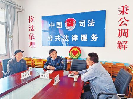 全國(guó)模范人民調(diào)解員、和政縣司法局三合司法所所長(zhǎng)張仲勝傾心調(diào)解矛盾糾紛(4月20日拍攝)。 新甘肅·甘肅法制報(bào)記者陳孝志攝