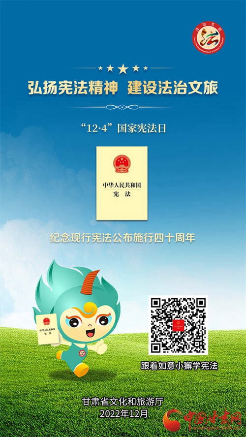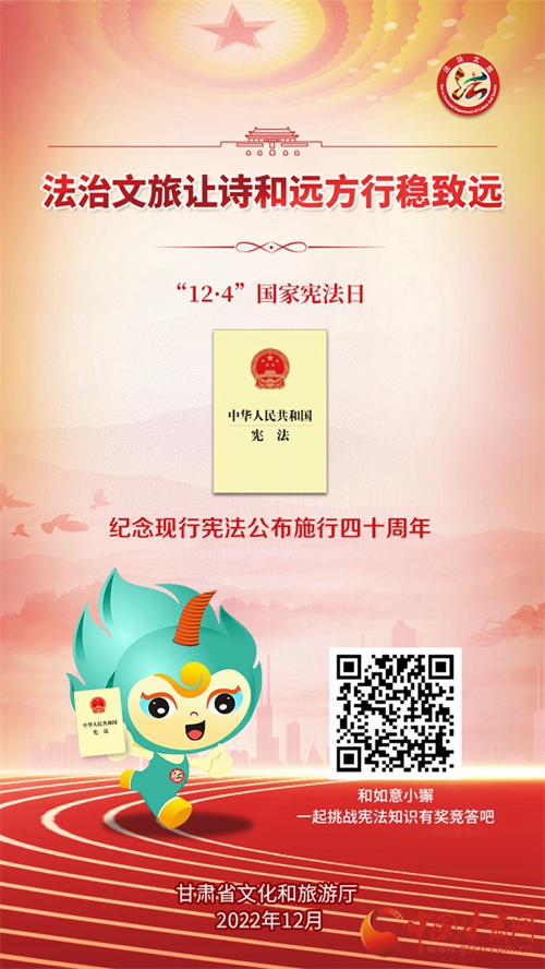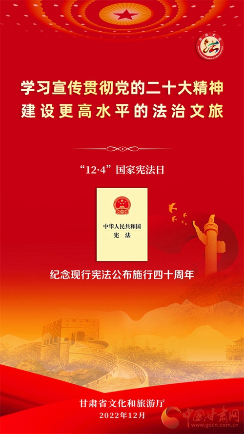 中國(guó)甘肅網(wǎng)12月7日訊 (本網(wǎng)記者 張?zhí)m琴)自12月4日國(guó)家憲法日暨憲法宣傳周啟動(dòng)以來(lái),我省各地開(kāi)展了形式多樣的宣傳活動(dòng),為深入學(xué)習(xí)宣傳貫徹黨的二十大精神,不斷增強(qiáng)人民群眾法治意識(shí),形成全民維護(hù)憲法的濃厚氛圍,同時(shí)加強(qiáng)文化和旅游的法治宣傳教育,省文旅廳近日開(kāi)展了國(guó)家憲法日暨憲法宣傳周系列活動(dòng)。