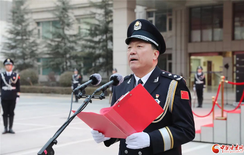 中國(guó)甘肅網(wǎng)1月10日訊(本網(wǎng)記者 程健)1月10日,蘭州市公安局舉行升警旗儀式,熱烈慶祝第三個(gè)中國(guó)人民警察節(jié),進(jìn)一步激勵(lì)全警深入學(xué)習(xí)宣傳貫徹黨的二十大精神,牢記初心使命、堅(jiān)定從警信念,匯聚向高而攀、向新而生、向遠(yuǎn)而行的磅礴力量,推動(dòng)新時(shí)代蘭州公安高質(zhì)量發(fā)展,為全面建設(shè)社會(huì)主義現(xiàn)代化國(guó)家、全面推進(jìn)中華民族偉大復(fù)興保駕護(hù)航。省公安廳副廳長(zhǎng)、蘭州市副市長(zhǎng)、市公安局黨委書(shū)記、局長(zhǎng)王立朝出席并講話。