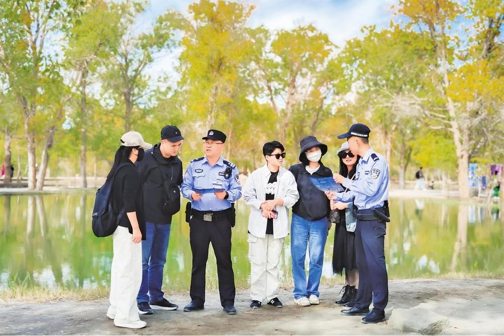 “壯美的胡楊,旖旎多姿的美景風(fēng)光,讓人不知不覺醉迷其中,景區(qū)隨處可見執(zhí)勤的民輔警,在這里旅游感覺安全感爆棚!”一位來(lái)自成都的游客鄧女士說(shuō)。
