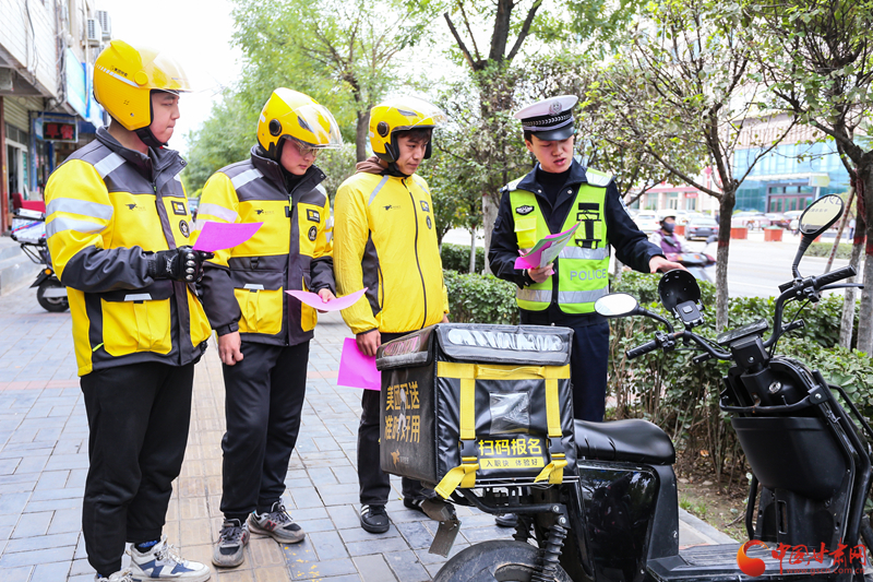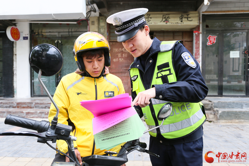 平?jīng)觯横轻冀痪癁橥赓u(mài)小哥“配送”交通安全餐