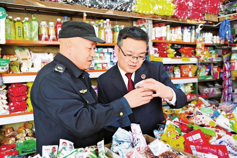 民勤縣檢察院聯(lián)合縣市場監(jiān)管局對校園周邊小賣部、超市等重點(diǎn)場所開展食品安全專項(xiàng)檢查,護(hù)航未成年人健康成長(2024年3月25日拍攝)。