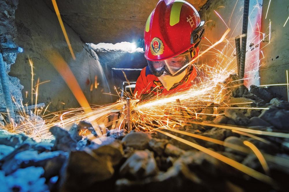 眼看就要取得勝利,余震突然來襲,救援現(xiàn)場可能出現(xiàn)二次坍塌的風(fēng)險。救援人員迅速組織人員撤離,在確?,F(xiàn)場環(huán)境安全后對風(fēng)險點(diǎn)進(jìn)行支撐加固處理,再次展開救援。