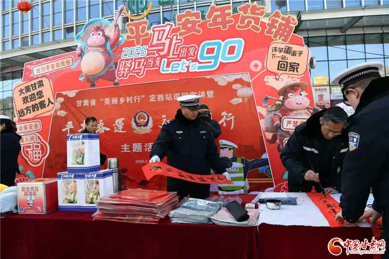 2月10日,農(nóng)歷臘月二十三,是中國傳統(tǒng)節(jié)日小年,正值2026年春運高峰,甘肅省公安廳交通管理總隊聯(lián)合定西市公安局交管支隊在服務區(qū)舉辦了甘肅省“美麗鄉(xiāng)村行”(定西站)交通安全巡回宣講暨“平安春運·交警同行”主題活動,向南來北往的駕駛?cè)怂蜕闲麓旱淖8:吞貏e的“安全年禮”。