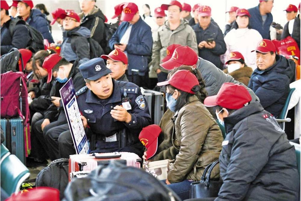 為了保障務(wù)工人員安全順暢出行,蘭州鐵路公安處定西北站派出所積極與定西北車站、客運(yùn)部門通聯(lián),專門開(kāi)辟“綠色通道”,暢通進(jìn)站、安檢、檢票等乘車環(huán)節(jié),劃定專門候車進(jìn)站區(qū)域,增派警力引導(dǎo)務(wù)工人員有序進(jìn)站。