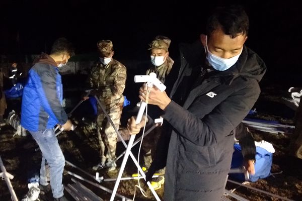 4月1日當(dāng)晚,長須貢瑪鄉(xiāng)紀(jì)委干部跟隨救援隊(duì)深入震中江瑪村等地開展災(zāi)情摸排和群眾救助工作,確保各類救災(zāi)物資及時(shí)發(fā)放到位。圖為長須貢瑪鄉(xiāng)紀(jì)檢監(jiān)察干部在受災(zāi)群眾臨時(shí)安置點(diǎn)參與救災(zāi)帳篷搭建工作。