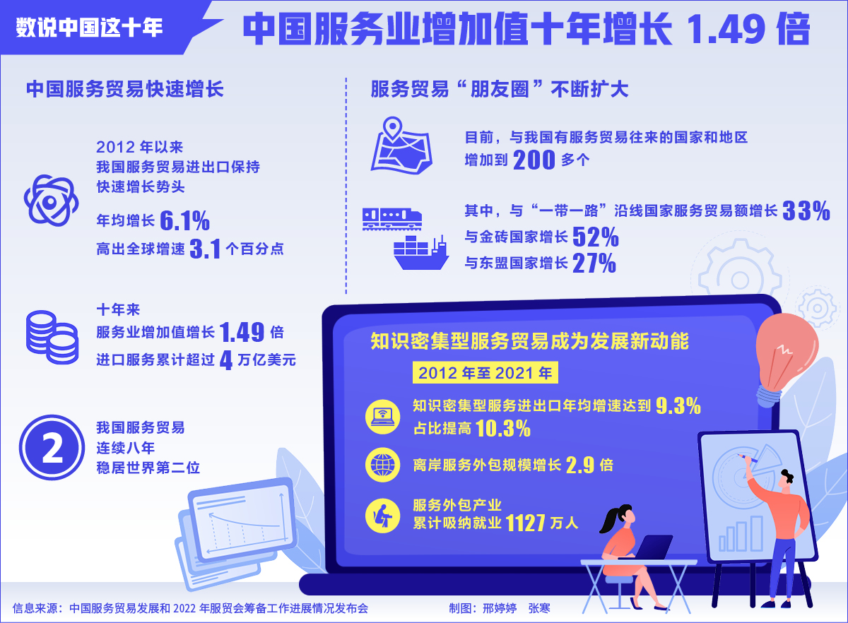 數(shù)說中國(guó)這十年丨中國(guó)服務(wù)業(yè)增加值十年增長(zhǎng)1.49倍