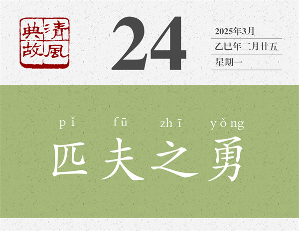 一氣之下,一時(shí)沖動(dòng),往往就會(huì)生出“匹夫之勇”。表面上看,似乎“渾身是膽雄赳赳”,其實(shí)不過是不計(jì)后果的魯莽而已。“匹夫之勇”不是信心十足,而是盲目自信;不是心理強(qiáng)大,而是心存僥幸。