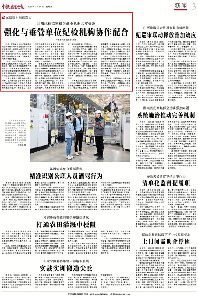 蘭州紀檢監(jiān)察機關(guān)健全機制共享資源 強化與垂管單位紀檢機構(gòu)協(xié)作配合