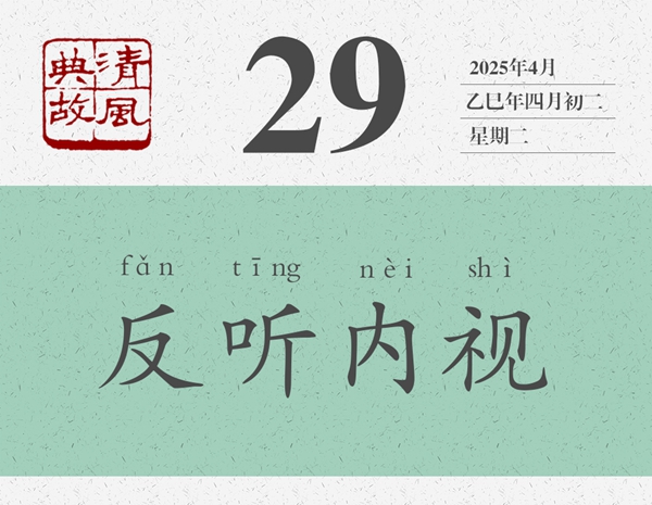 后人將“反聽(tīng)之謂聰,內(nèi)視之謂明”縮減為“反聽(tīng)內(nèi)視”四個(gè)字,并以此為典提醒人們,對(duì)外要虛心聽(tīng)取別人的批評(píng)意見(jiàn),對(duì)內(nèi)要及時(shí)反省自己的所作所為?!逗鬂h書(shū)·王允傳》:“夫內(nèi)視反聽(tīng),則忠臣竭誠(chéng);寬賢矜能,則義士厲節(jié)。”