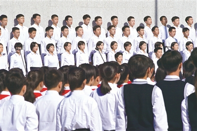 “白山黑水齊出動,復興我中華……”殘歷碑廣場上,80名青年學生鏗鏘有力的朗誦聲,讓《送戰(zhàn)友編歌壯行保國家》《黑水白山•調寄滿江紅》《濱江抒懷》三首分別由東北抗聯(lián)英雄楊靖宇、趙尚志、趙一曼當年寫下的詩詞響徹在沈陽“九•一八”歷史博物館上空。