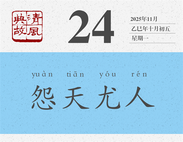 朱熹《論語(yǔ)集注》對(duì)“不怨天,不尤人”的理解要簡(jiǎn)潔得多,也深刻得多:“不得于天而不怨天,不合于人而不尤人。”《荀子·榮辱》則更進(jìn)一層:“自知者不怨人,知命者不怨天。”能夠看清自己的人就不會(huì)去埋怨別人,那么埋怨誰(shuí)呢,當(dāng)然是埋怨自己了;能夠知道自己命運(yùn)的人就不會(huì)怪罪于天,那么怪罪誰(shuí)呢,當(dāng)然是怪罪自己了。后世則反“不怨天,不尤人”之意,而以“怨天尤人”為典,形容遇到不稱(chēng)心的事情,或者事情不順利的時(shí)候,一味埋怨天,一味責(zé)怪別人。言外之意,就是不從主觀(guān)上找原因,不在自己身上找問(wèn)題。宋人李昌齡《太上感應(yīng)篇》:“苛虐其下,恐嚇于他。怨天尤人,呵風(fēng)罵雨。”
