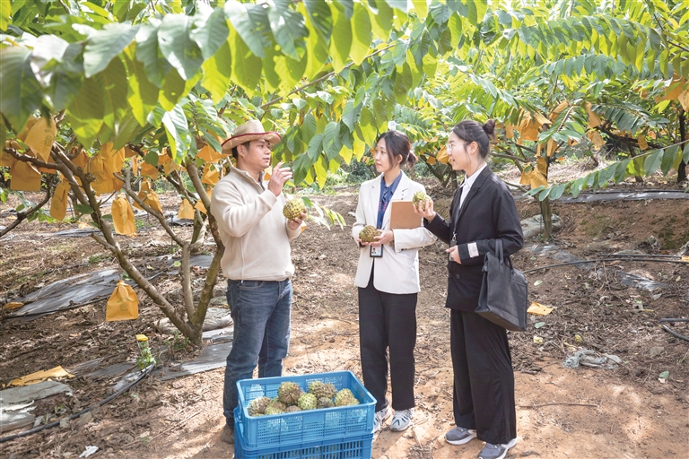 廣東省四會(huì)市紀(jì)委監(jiān)委把“百千萬(wàn)工程”作為政治監(jiān)督的“頭號(hào)工程”來(lái)抓,圍繞產(chǎn)業(yè)發(fā)展、土地資金要素保障、干部作風(fēng)等開(kāi)展精準(zhǔn)監(jiān)督。圖為近日,該市紀(jì)委監(jiān)委干部到逕口鎮(zhèn)釋迦果種植基地走訪了解有關(guān)情況。胡源 攝