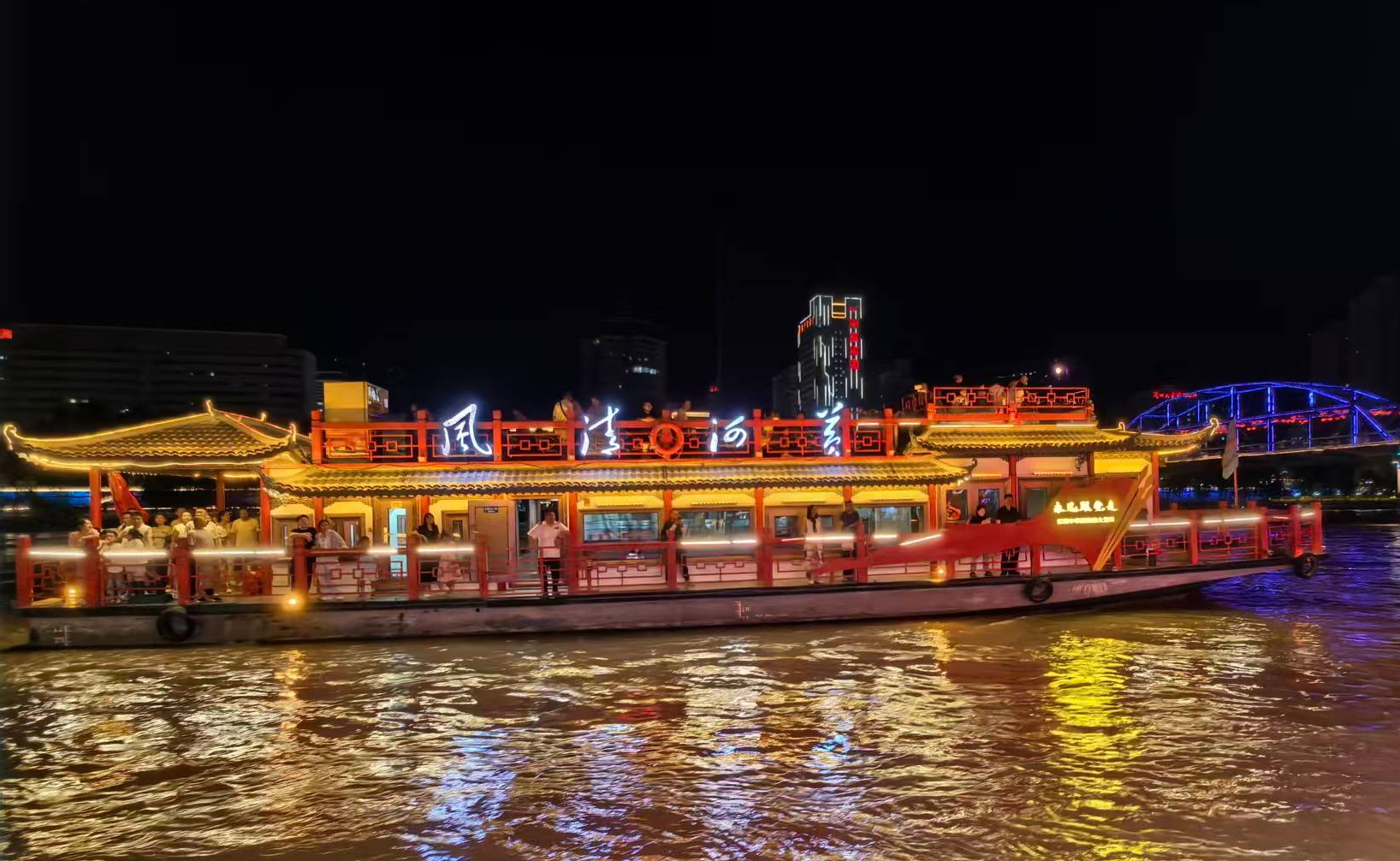 圖為行駛在黃河上的“黃河清風(fēng)”號(hào)游船。