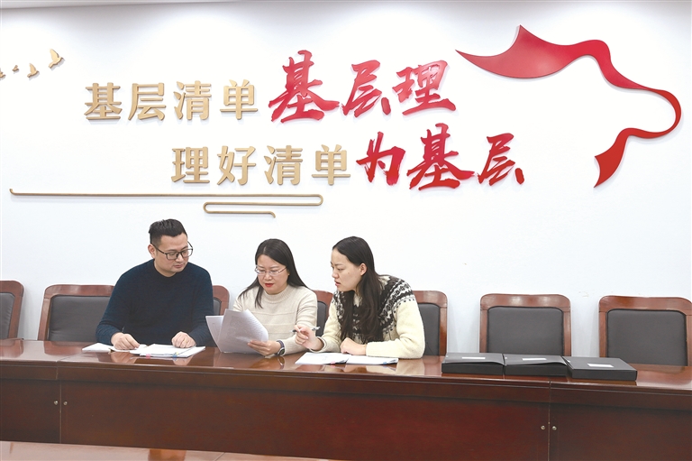 全面建立鄉(xiāng)鎮(zhèn)(街道)履職事項清單是加強基層治理體系和治理能力現(xiàn)代化建設(shè)的基礎(chǔ)性制度安排,是為基層減負、破解基層治理“小馬拉大車”突出問題的重要舉措。目前,全面建立鄉(xiāng)鎮(zhèn)(街道)履職事項清單工作取得明顯成效。圖為江蘇省張家港市南豐鎮(zhèn)工作人員研究落實權(quán)責事項。羅燕 攝