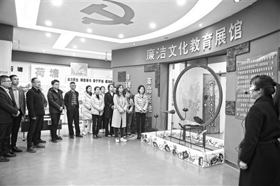 江西省景德鎮(zhèn)市紀委監(jiān)委充分挖掘本土廉潔文化資源,推動建立生動的廉潔教育實體課堂,著力鍛造忠誠干凈擔(dān)當(dāng)、敢于善于斗爭的紀檢監(jiān)察鐵軍。圖為該市紀委監(jiān)委干部參觀景德鎮(zhèn)荷塘廉潔文化教育基地,接受廉政教育。歐陽晨君 攝
