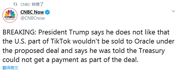 【環(huán)球網(wǎng)快訊】據(jù)CNBC剛剛消息,美國總統(tǒng)特朗普在16日的白宮新聞記者會上稱,他不喜歡目前甲骨文與TikTok目前擬定的合作協(xié)議,原因是TikTok的美國業(yè)務(wù)不會出售給甲骨文,而且他還被告知,美國財(cái)政部將無法從這次交易中拿到補(bǔ)償。