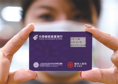 1月5日,在上海交通大學醫(yī)學院附屬同仁醫(yī)院,工作人員在展示數(shù)字人民幣“硬錢包”。 新華社記者 劉穎 攝
