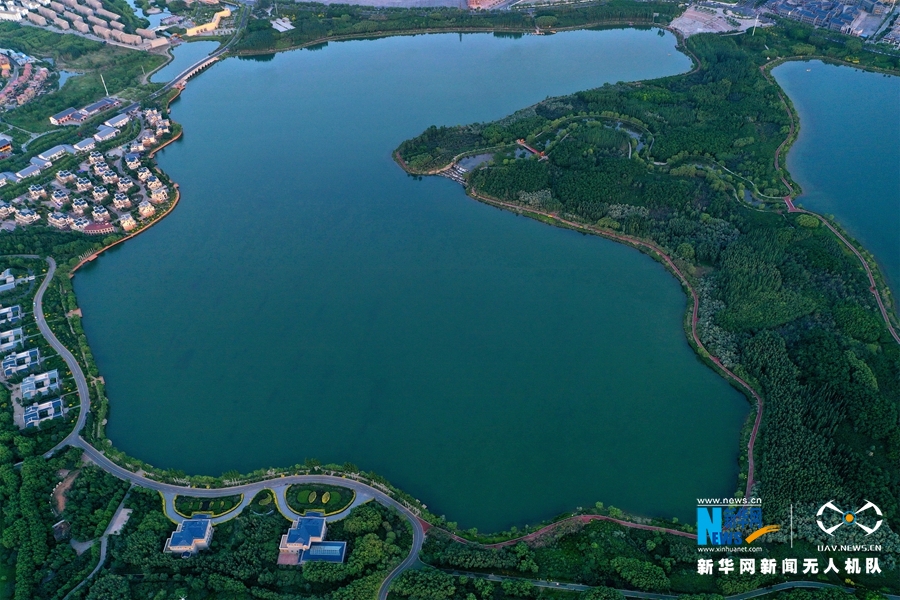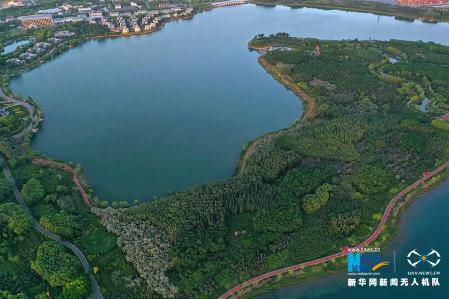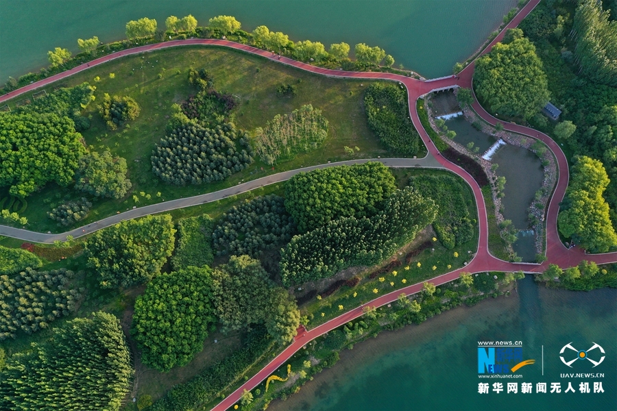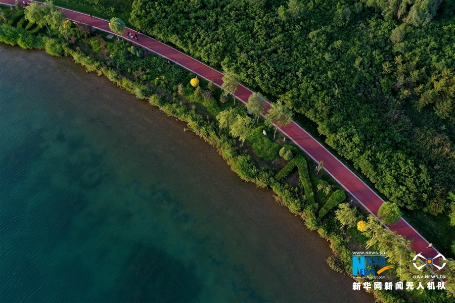 這是近日航拍的甘肅省張掖市蘆水灣生態(tài)景區(qū)。蘆水灣生態(tài)景區(qū)位于張掖市濱河新區(qū),湖水湛藍(lán),草木翠綠,景色宜人,宛如一顆鑲嵌在河西走廊的“寶石”。新華網(wǎng)發(fā)(吳學(xué)珍 攝)