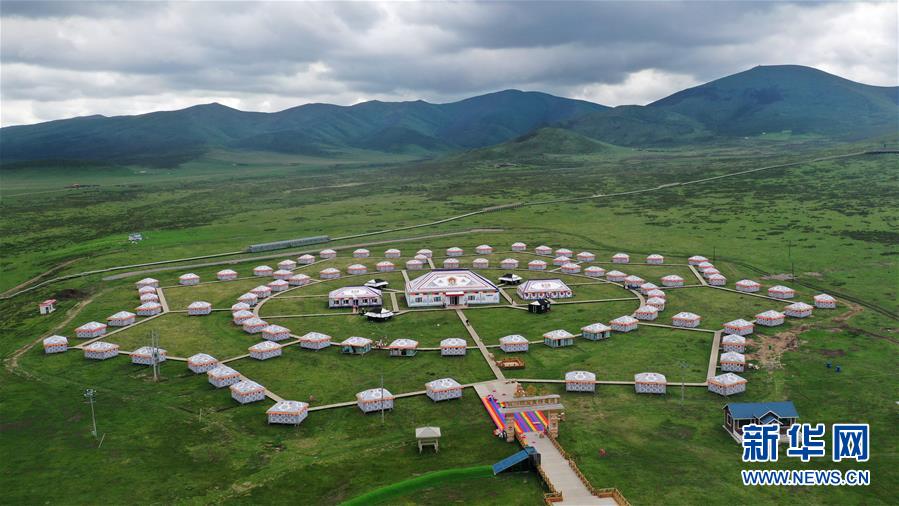 這是6月20日拍攝的甘南藏族自治州碌曲縣尕海鎮(zhèn)尕秀村帳篷城景區(qū)(無人機(jī)照片)。 新華社記者 陳斌 攝