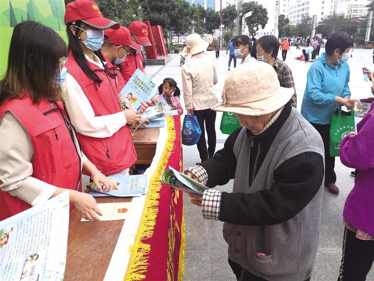 志愿者發(fā)放宣傳資料 楊貴智 攝