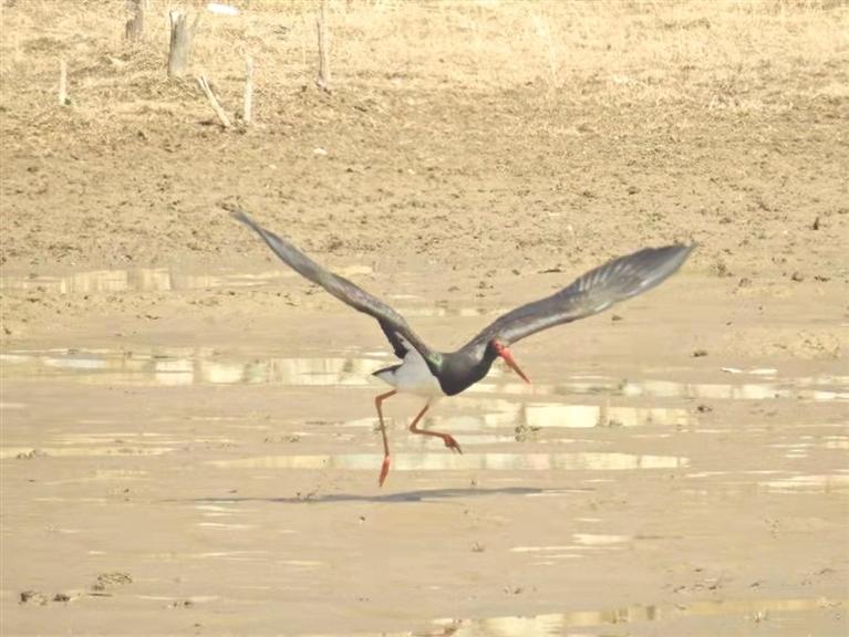 黑鸛是國家一級重點(diǎn)保護(hù)野生鳥類,喜在河流、沼澤、濕地中覓食魚、蛙、昆蟲等,繁殖于崖壁或高樹上。黑鸛在我國分布于東北、西北、華北等大部分地區(qū),分布較廣,但種群數(shù)量較少。黑鸛對覓食水域,環(huán)境安全性要求極高,水質(zhì)清澈,水體食物豐富,對棲息環(huán)境十分“挑剔”。黑鸛現(xiàn)身該區(qū)域,從一個側(cè)面印證了該區(qū)域水質(zhì)向好。據(jù)介紹,連年來,連城保護(hù)區(qū)開展生態(tài)治理修復(fù)工程,生態(tài)環(huán)境明顯改善,該局加強(qiáng)水域內(nèi)生物多樣性保護(hù)工作力度,引來大天鵝、黑鸛、大白鷺、普通秋沙鴨、赤麻鴨、綠頭鴨等水鳥來此棲息停歇,成為美麗風(fēng)景線。