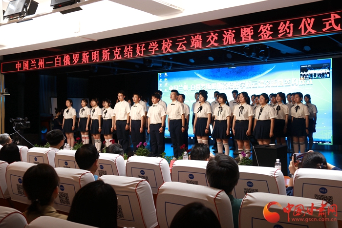 中國甘肅網(wǎng)6月22日訊 (本網(wǎng)記者 張?zhí)m琴 文/圖)白俄羅斯明斯克中學(xué)生在線用中文唱著兒歌《小毛驢》,穿一身“中國紅”跳中國古典舞,表演武術(shù)、功夫扇。中國甘肅的中學(xué)生則用俄語唱著動(dòng)聽的歌曲《卡林卡》,用優(yōu)美的舞蹈《萬疆》向明斯克學(xué)生致意。6月21日下午,“百校結(jié)好”倡議促成中白兩國中學(xué)結(jié)成友好學(xué)校并在線簽約,兩國中學(xué)生用這樣的方式表達(dá)著友誼。
