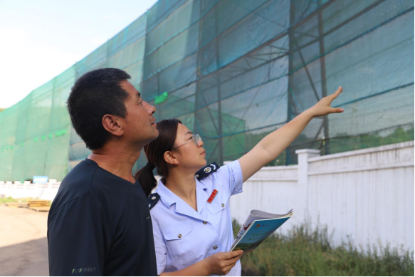 稅務(wù)干部在華星煤業(yè)有限責任公司了解防風(fēng)抑塵裝備改造情況