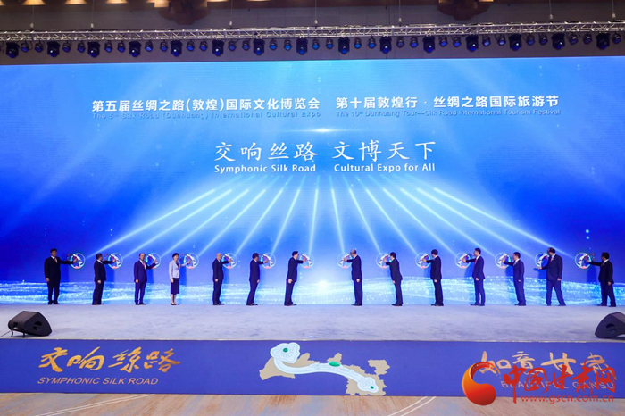 第五屆絲綢之路(敦煌)國(guó)際文化博覽會(huì)和第十屆敦煌行·絲綢之路國(guó)際旅游節(jié)于2021年9月24日—26日在甘肅省敦煌市隆重舉行。中共中央政治局委員、中央書(shū)記處書(shū)記、中宣部部長(zhǎng)黃坤明以視頻形式出席開(kāi)幕式暨高峰會(huì)議并發(fā)表主旨演講,300多名國(guó)外、國(guó)際組織及國(guó)內(nèi)省區(qū)市代表現(xiàn)場(chǎng)參加會(huì)議,400多萬(wàn)網(wǎng)友線(xiàn)上參加有關(guān)活動(dòng)。大會(huì)以習(xí)近平新時(shí)代中國(guó)特色社會(huì)主義思想為指導(dǎo),認(rèn)真落實(shí)“一帶一路”倡議,以線(xiàn)上線(xiàn)下相結(jié)合的方式舉辦一系列主體活動(dòng),有力促進(jìn)絲路沿線(xiàn)各國(guó)文化交流與旅游合作,有效增進(jìn)文化認(rèn)同與情感共鳴,是一次展示中國(guó)文化自信、共商“一帶一路”建設(shè)、推動(dòng)文旅融合發(fā)展的盛會(huì),是一次提升甘肅對(duì)外影響力、展示開(kāi)放新形象、凝聚發(fā)展新動(dòng)力的盛會(huì),得到了國(guó)際社會(huì)的廣泛贊譽(yù)和一致好評(píng)。