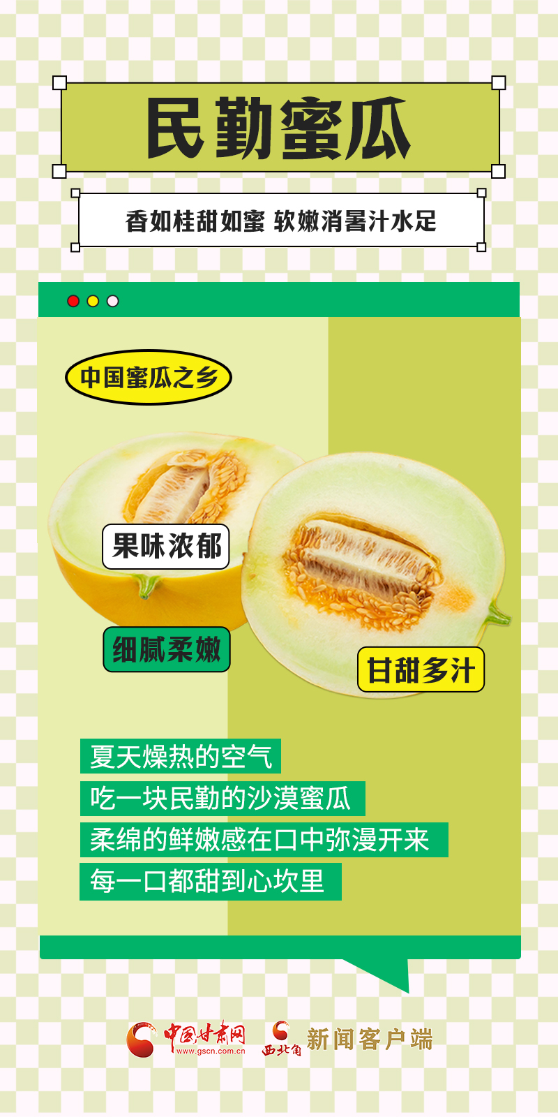 甘肅是中國自然地理多樣的省份,從隴南一直到敦煌,跨越了三大高原地帶、四大氣候類型,日照充足、干燥多風、降水量少、晝夜溫差大,這種獨特的氣候特點,十分適宜水果的生長。盛夏時節(jié),甘肅各地時令瓜果陸續(xù)上市,不僅豐富了百姓的“果盤子”,也鼓起了農民的“錢袋子”。“瓜果經濟”在隴原大地上助力鄉(xiāng)村振興。