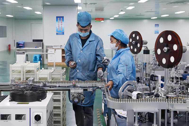位于金昌經(jīng)濟技術(shù)開發(fā)區(qū)的甘肅金宏翔新能源有限公司,工人在電池生產(chǎn)線上作業(yè)。記者 范培珅 攝
