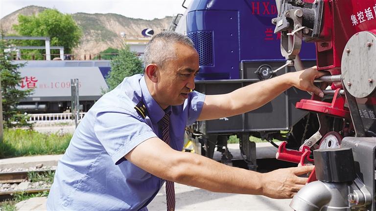 中國甘肅網(wǎng)7月9日訊 據(jù)蘭州晚報報道(記者 譚安麗 文/圖 通訊員 趙童)仲夏時節(jié),陽光明媚,沐浴著大西北的陽光,一列飛馳的鋼鐵巨龍?jiān)陔]海線群山中穿行。駕駛室內(nèi),56歲的司機(jī)劉曉明手握閘把、眼睛緊緊注視前方,操縱著機(jī)車穿山越谷,快速馳騁。
