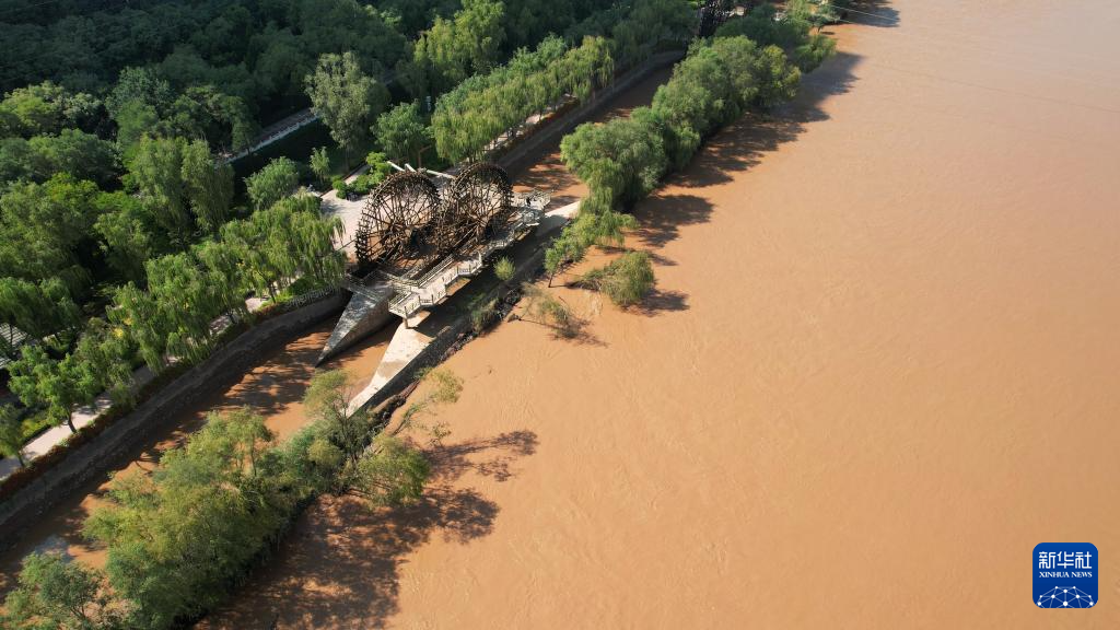 這是位于蘭州市城關(guān)區(qū)的蘭州水車(chē)博覽園內(nèi)的水車(chē)(9月24日攝,無(wú)人機(jī)照片)。新華社記者陳斌攝
