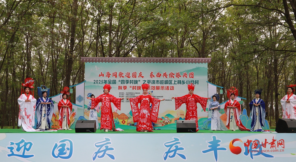 9月20日,以“山海同歌迎國(guó)慶 東西共繪振興圖”為主題的2025年全國(guó)“四季村晚”之平?jīng)鍪嗅轻紖^(qū)秋季“村晚”示范展示活動(dòng)舉辦。崆峒區(qū)和天津市河西區(qū)兩地文化志愿者通過同臺(tái)文藝展演、非遺體驗(yàn)、民俗特色走秀等藝術(shù)形式,為現(xiàn)場(chǎng)700余名觀眾及直播平臺(tái)數(shù)萬網(wǎng)友呈現(xiàn)了一場(chǎng)隴東風(fēng)情的鄉(xiāng)村文化盛宴,彰顯了“隴原津韻”協(xié)作幫扶情誼。