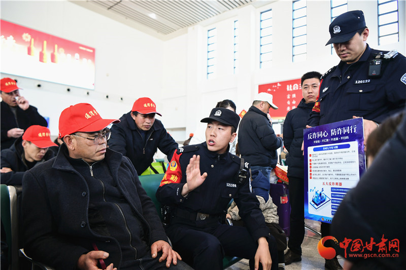 “出門在外,凡是遇到借款、匯款、轉(zhuǎn)賬等問題時,一定要核實清楚對方的身份,可以撥打?qū)Ψ降某S锰柎a,或者使用視頻聊天仔細詢問后再做決定,切不可心急將錢打給對方,防止被詐騙造成經(jīng)濟損失…”定西北站派出所民警李凱在候車大廳向務工返崗人員細細叮囑著。