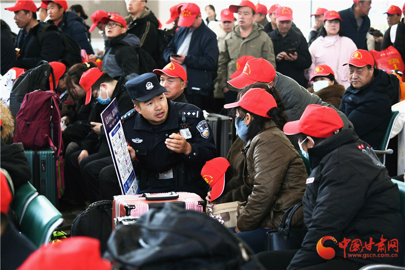 這批務工人員來自定西市各縣區(qū),既有復崗務工人員也有新聘崗務工人員,為鋪就這條溫暖返崗路,蘭州鐵路公安處定西北站派出所積極與定西北車站、客運部門通聯(lián),專門開辟綠色通道,暢通進站、安檢、檢票等進站環(huán)節(jié),劃定專門候車進站區(qū)域,同時,增派警力逐一引導務工人員有序進站,幫助提拿大件行李,講解防范電信詐騙小妙招,進一步保障了務工團體旅客乘車安全。