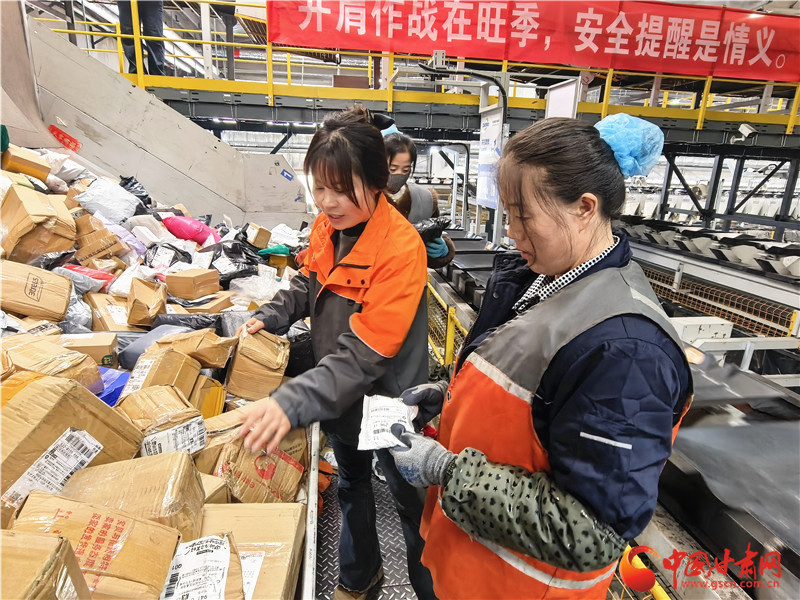 楊秀秀在快遞一線分揀快遞