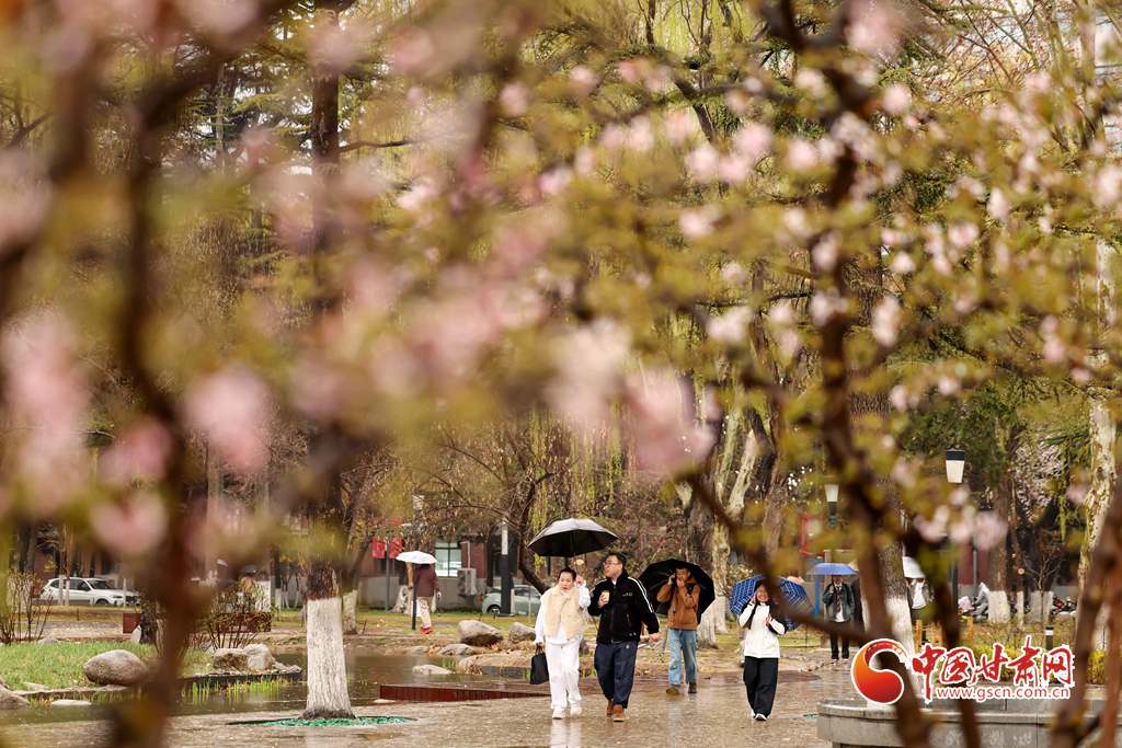 3月29日,蘭州迎來降雨天氣。蘭州大學校園內細雨綿綿,繁花帶露,師生漫步雨中賞花觀景,盡享春日詩意。溫潤春雨潤澤金城,勾勒出清新雅致的春日畫卷。