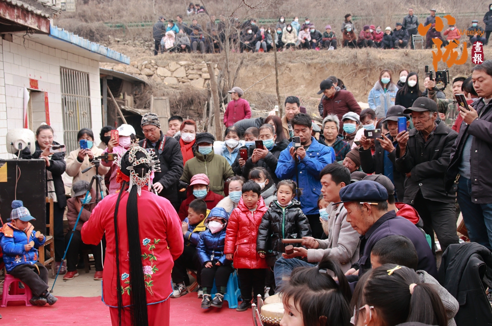臺(tái)前演員投入表演,臺(tái)下不少村民舉著手機(jī)記錄這熱鬧場(chǎng)景。古樸的民居、山坡上攢動(dòng)的人頭,伴著戲曲的唱腔,滿是傳統(tǒng)民俗活動(dòng)的鮮活勁兒,盡顯民間藝術(shù)的感染力。